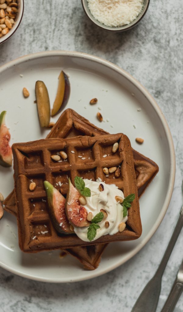 Обои: полезный завтрак, вафли - 600x1024