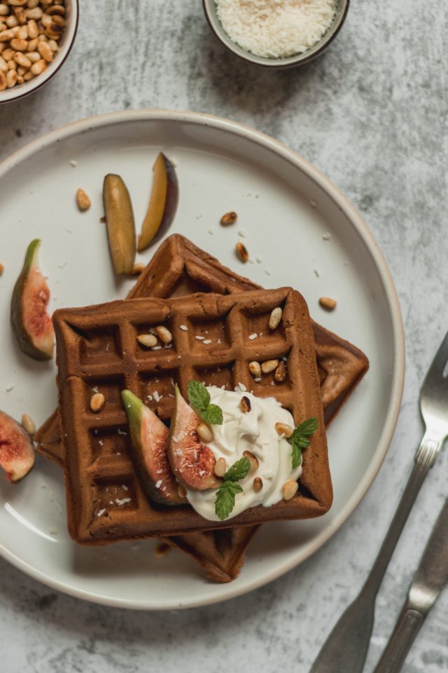 Обои: полезный завтрак, вафли - 640x960