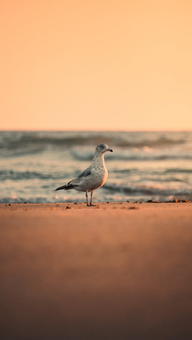 Обои: море, чайка, закат - 640x1136
