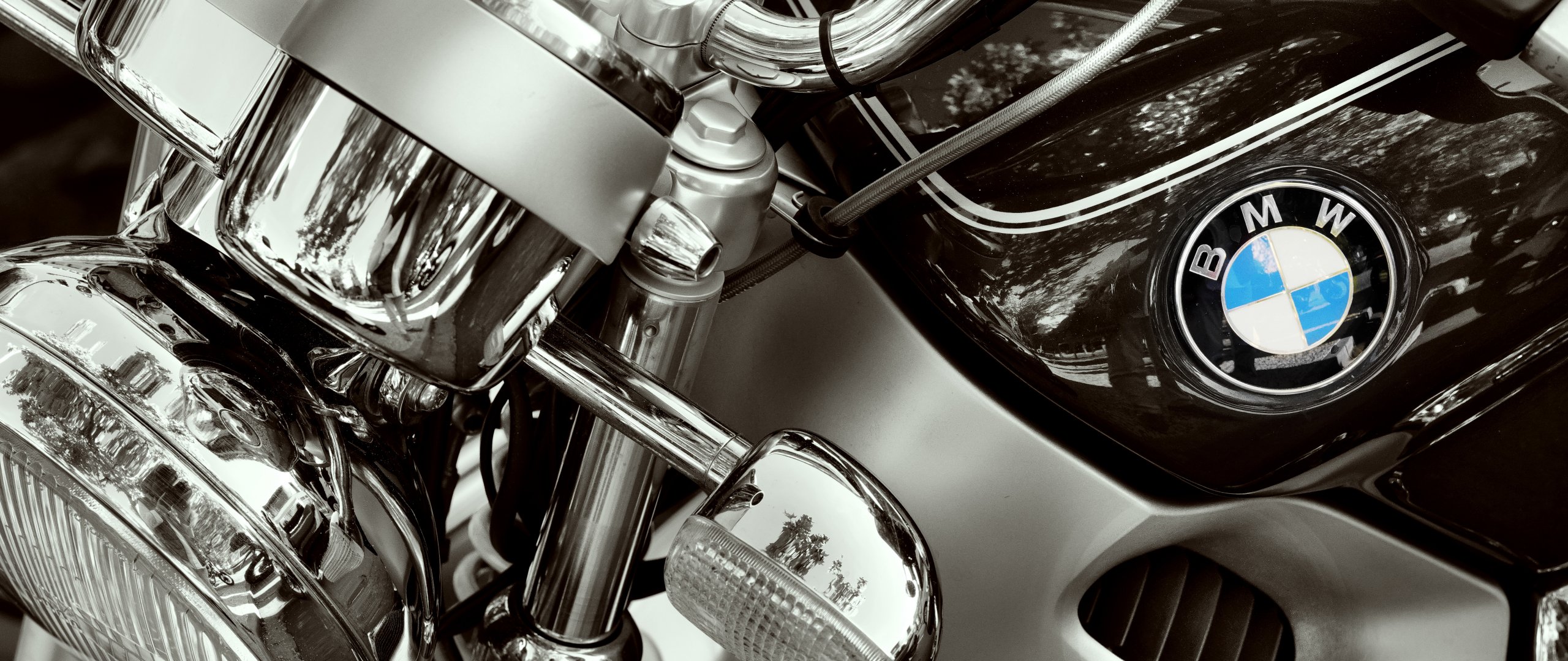 Обои: BMW, логотип, хром - 2560x1080