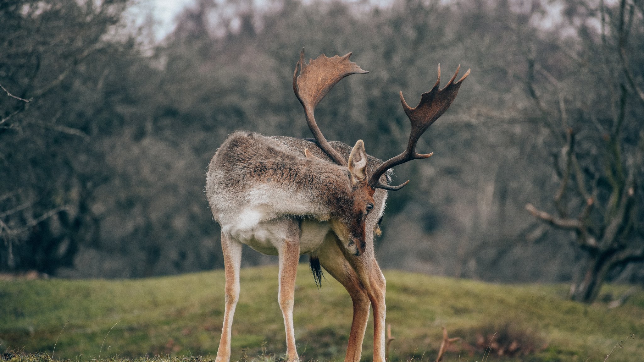 Обои: Бентвельд, Нидерланды, олень - 2048x1152