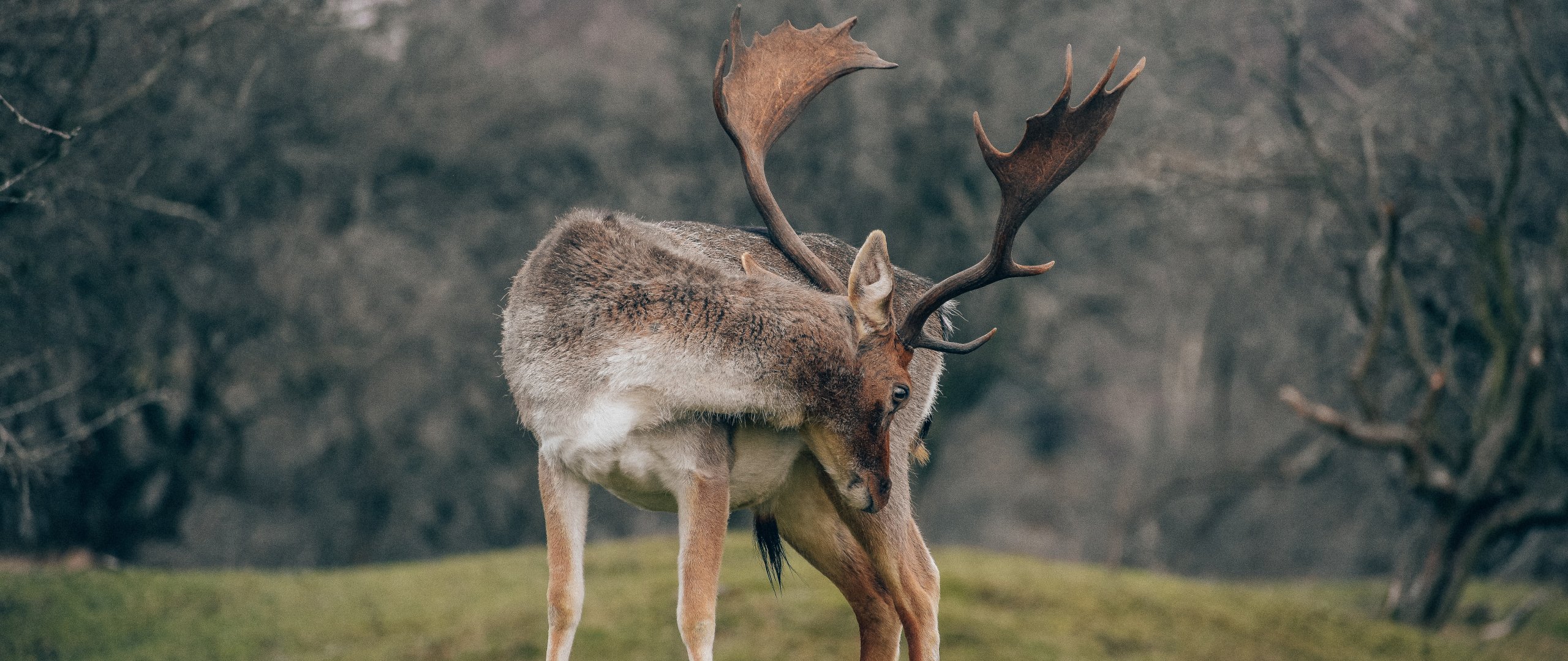 Обои: Бентвельд, Нидерланды, олень - 2560x1080