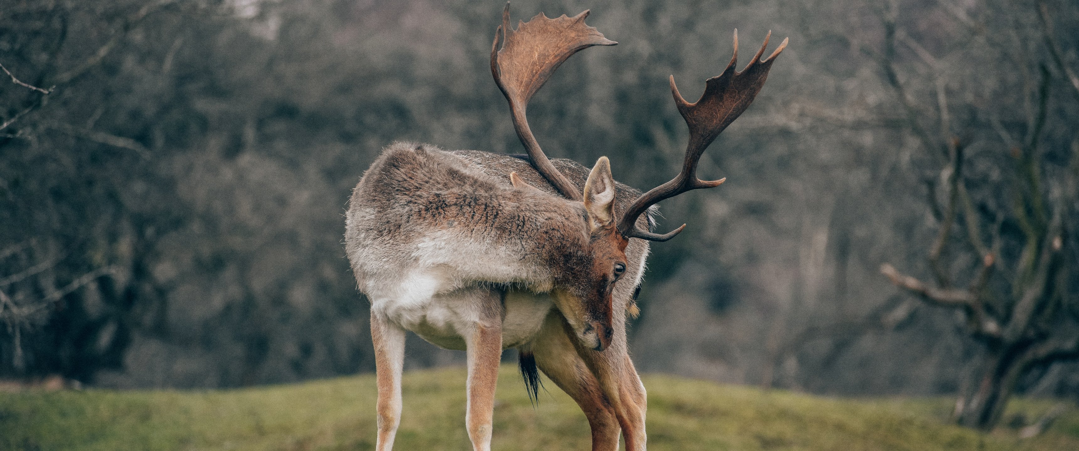 Обои: Бентвельд, Нидерланды, олень - 3440x1440