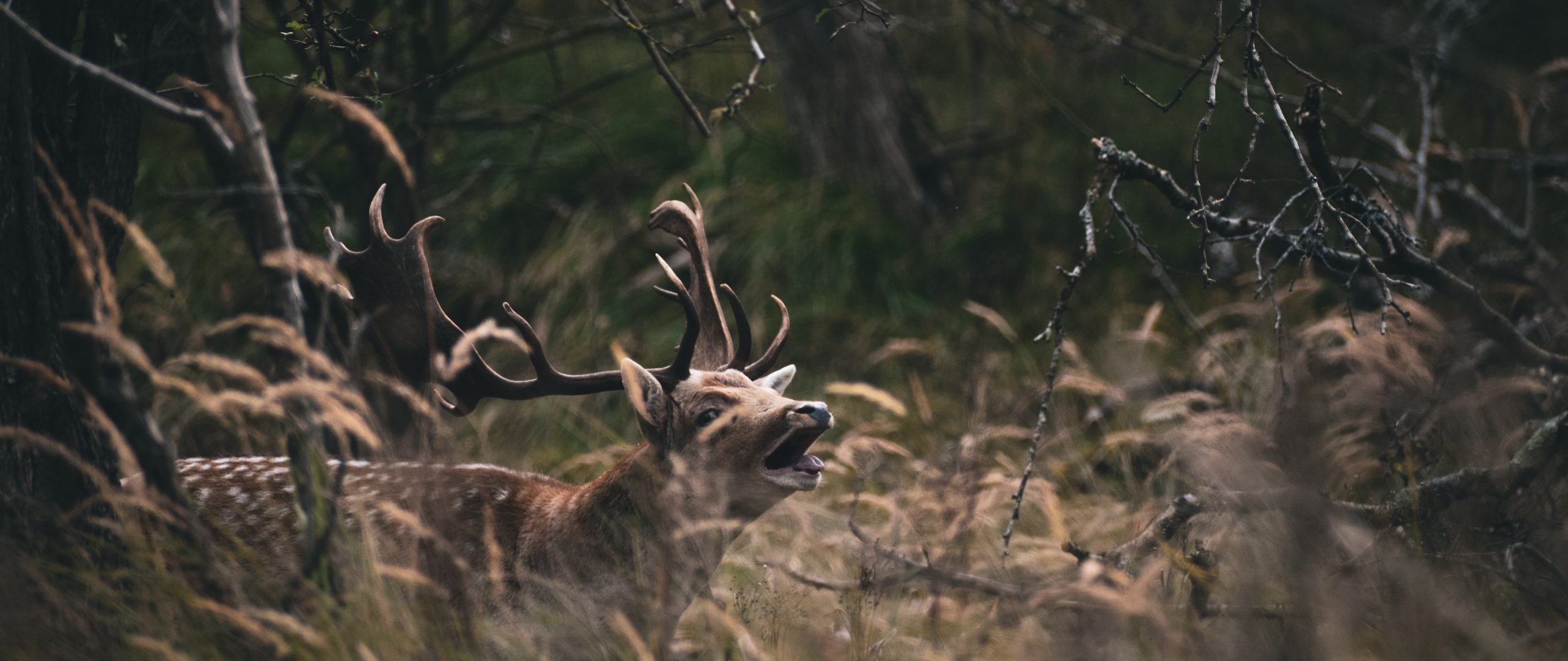 Обои: Бентвельд, Нидерланды, олень - 2560x1080