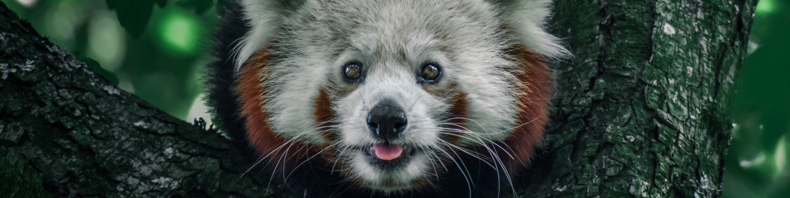 Обои: красная панда, на дереве, дикая природа - 1590x400