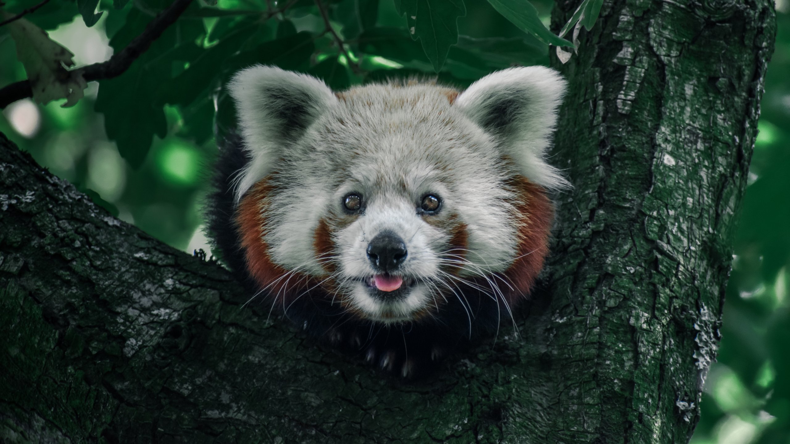 Обои: красная панда, на дереве, дикая природа - 2560x1440