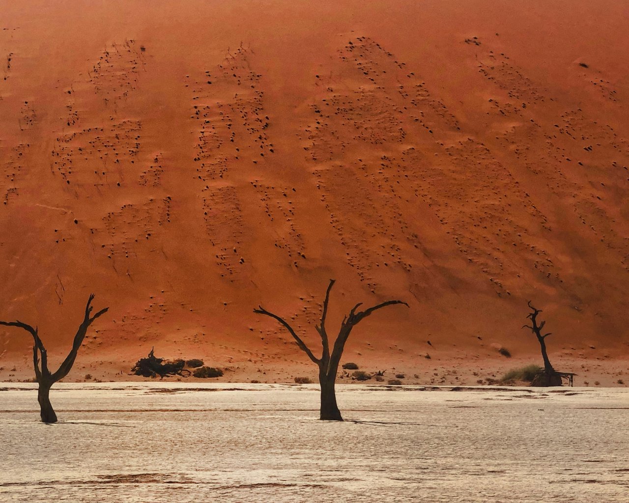 Обои: Dead Vlei, Соссусфлей, Намибия, пустыня, мертвые деревья - 1280x1024