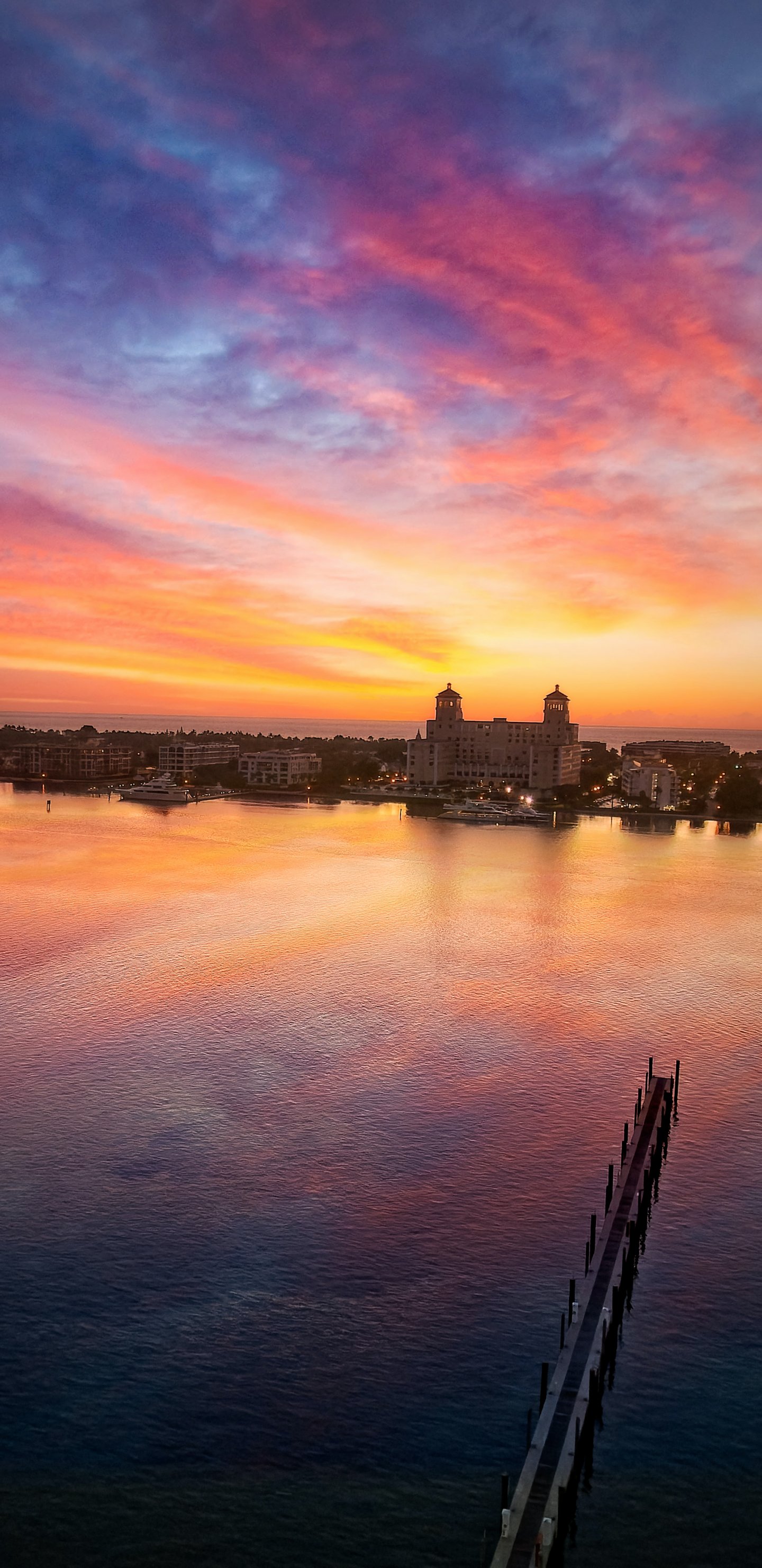 Обои: закат, рассвет, город, вода - 1440x2960