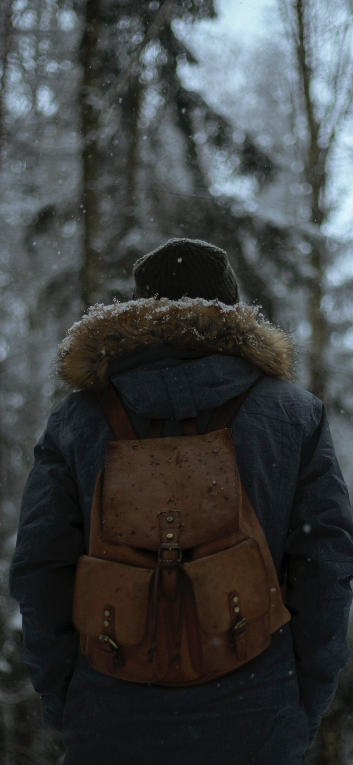 Обои: холодный, зимний лес, падает снег - 1170x2532