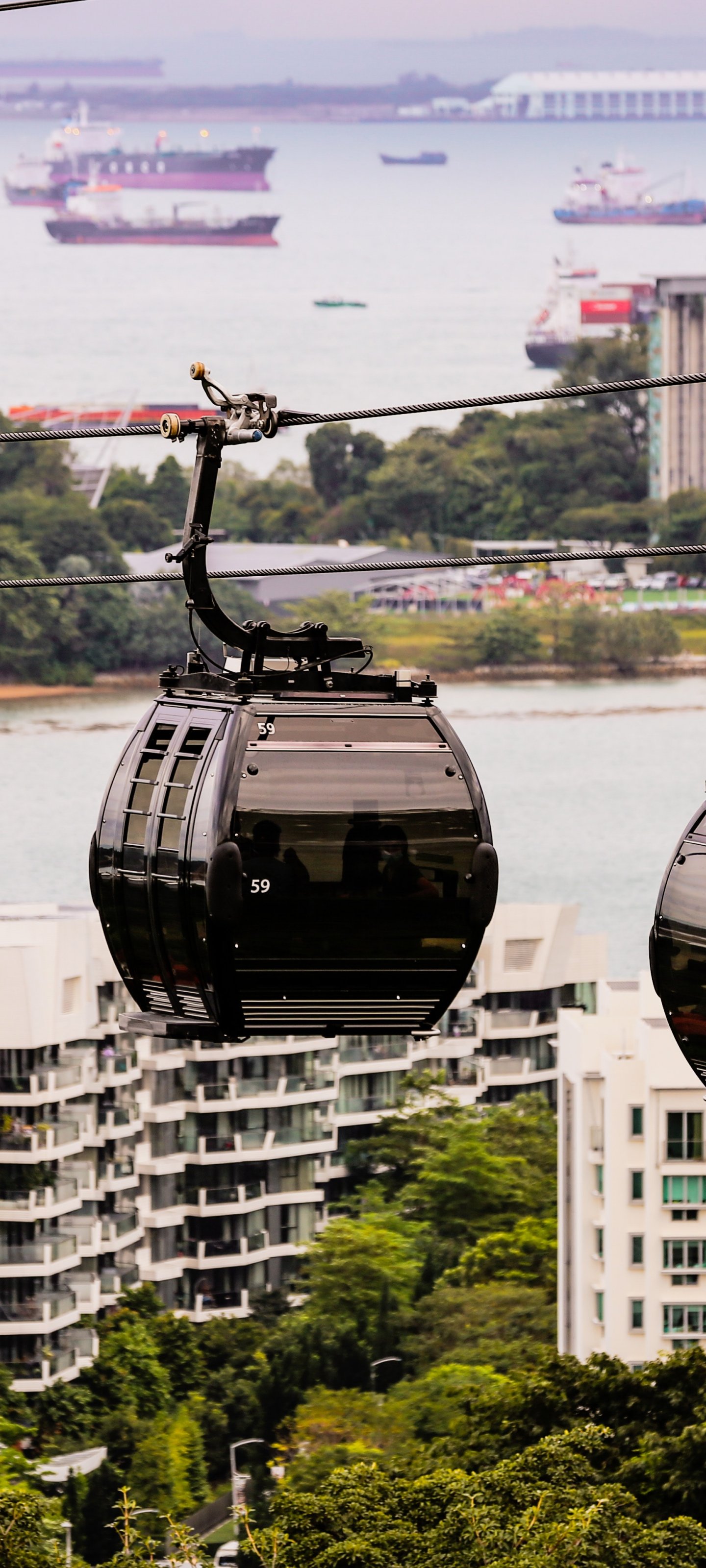 Обои: Сингапурская канатная дорога, Телок Бланга, Сингапур - 1440x3200