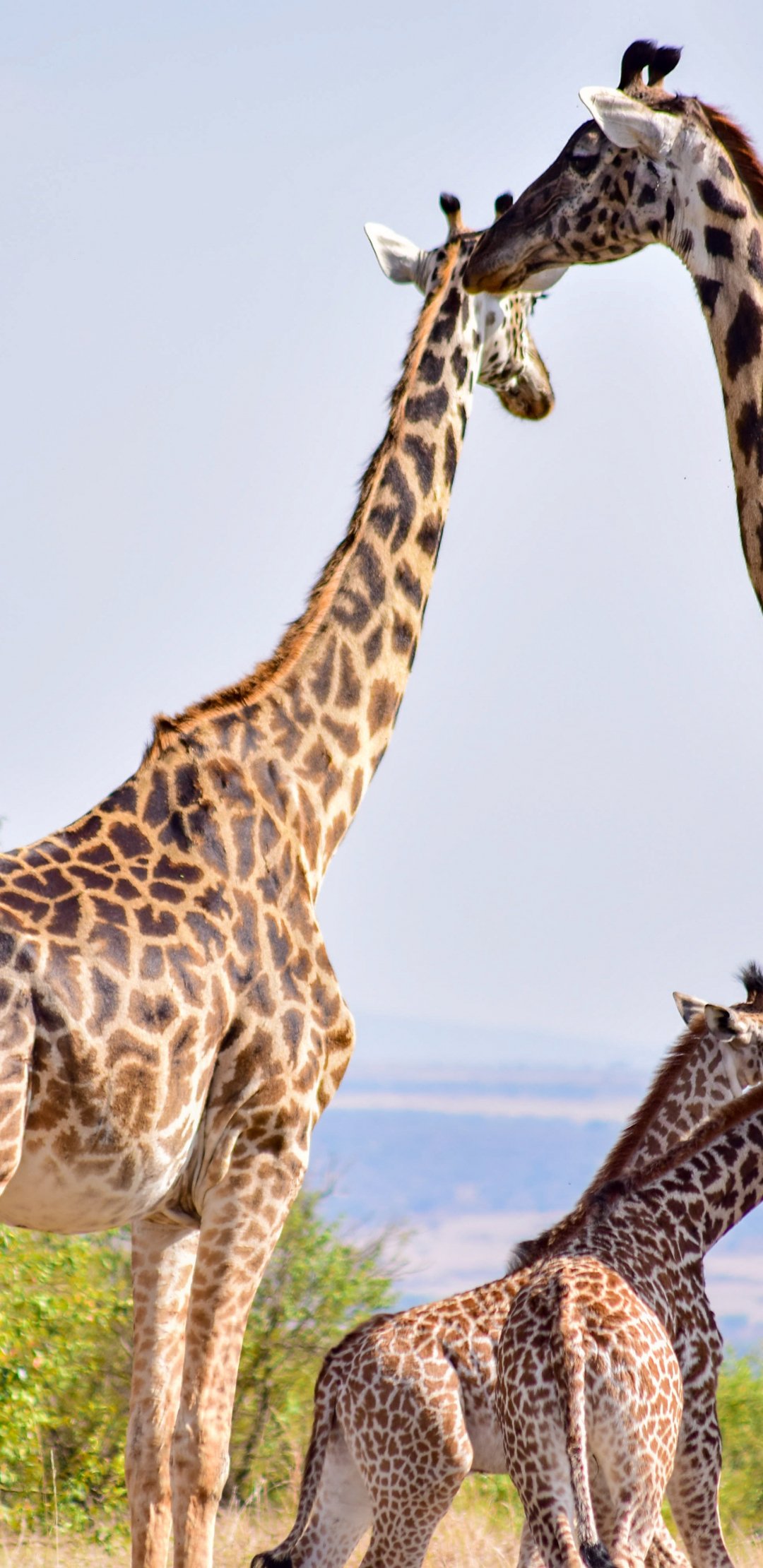Обои: Национальный заповедник Масаи Мара, Сиана, Кения, жирафы - 1080x2220