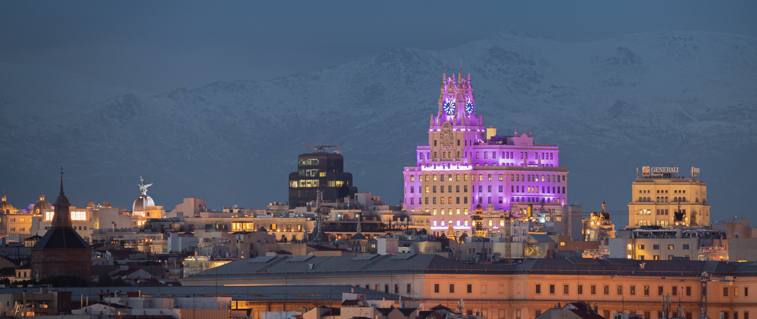 Обои: город, ночь, свет огней - 2560x1080