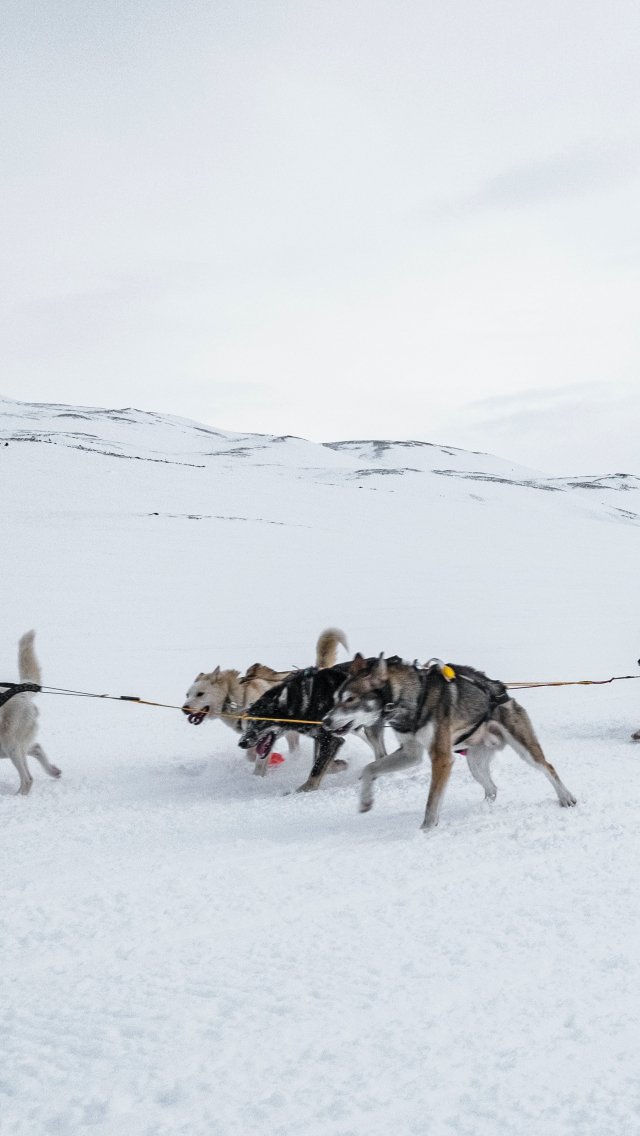 Обои: Шпицберген, Аляска, собачья упряжка - 640x1136