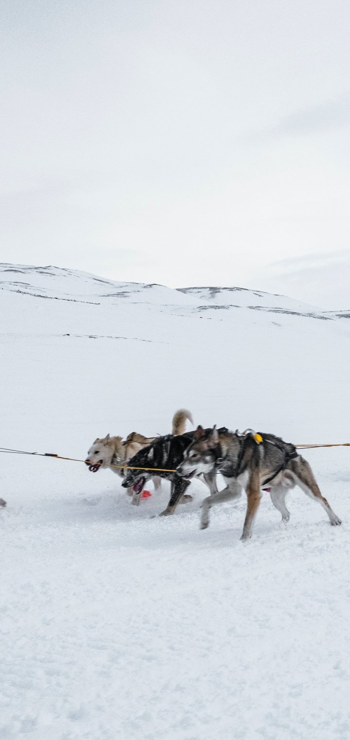 Обои: Шпицберген, Аляска, собачья упряжка - 720x1520