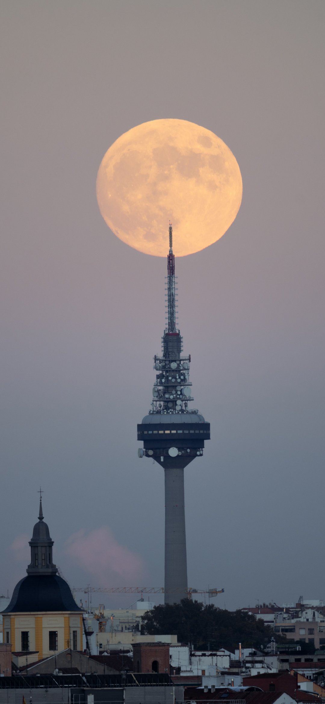 Обои: луна над городом, полнолуние - 1080x2340