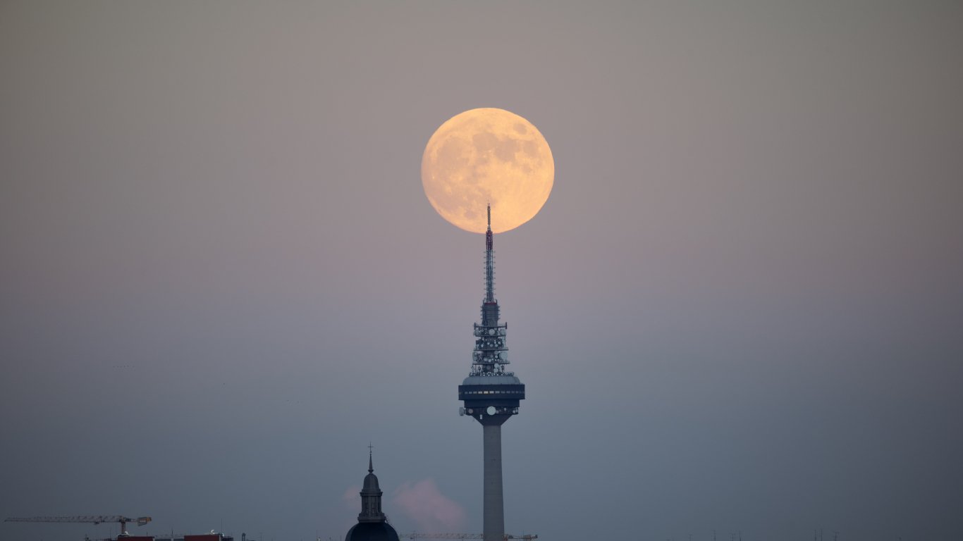 Обои: луна над городом, полнолуние - 1366x768