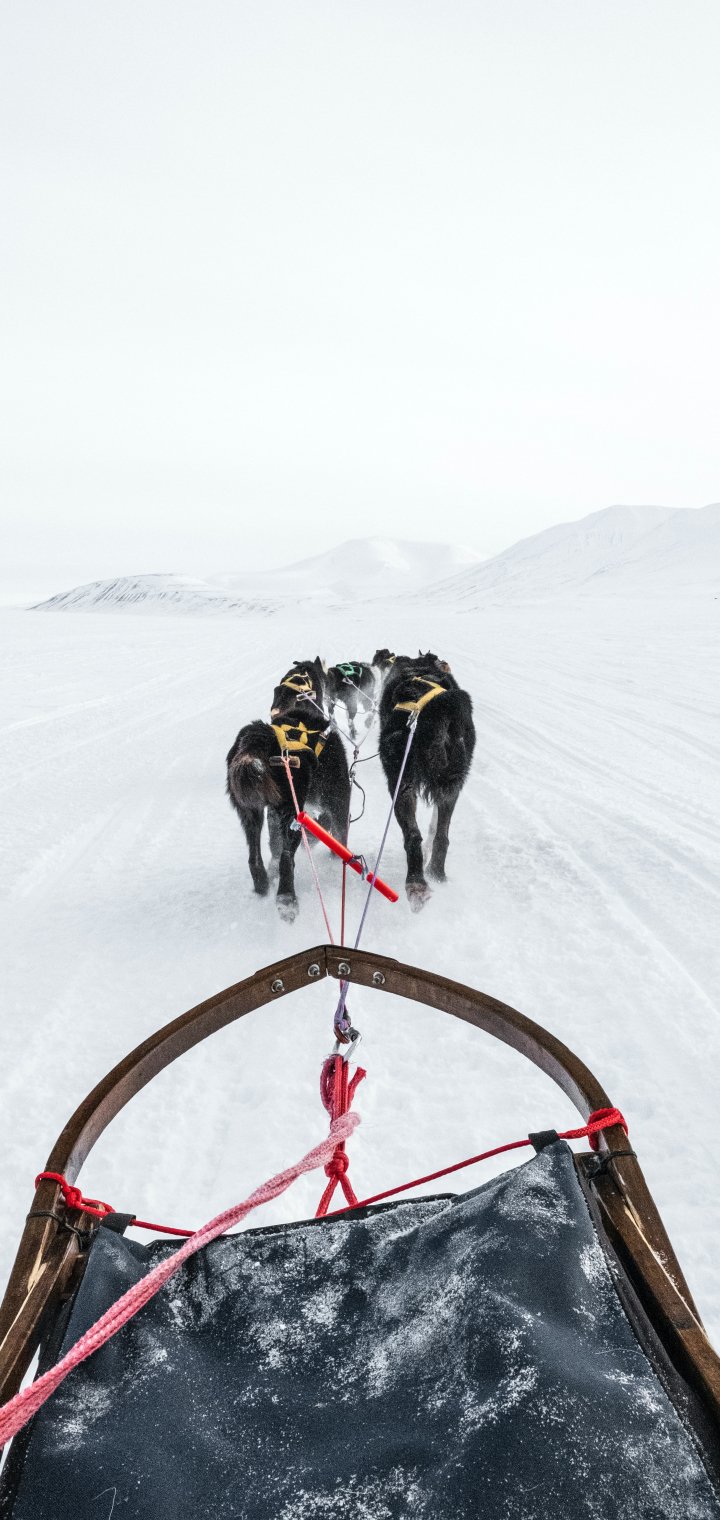 Обои: Шпицберген, собачья упряжка - 720x1520