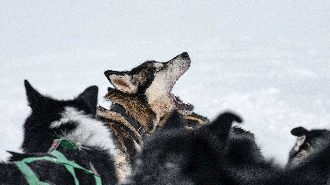 Обои: Шпицберген, стая собак - 1366x768