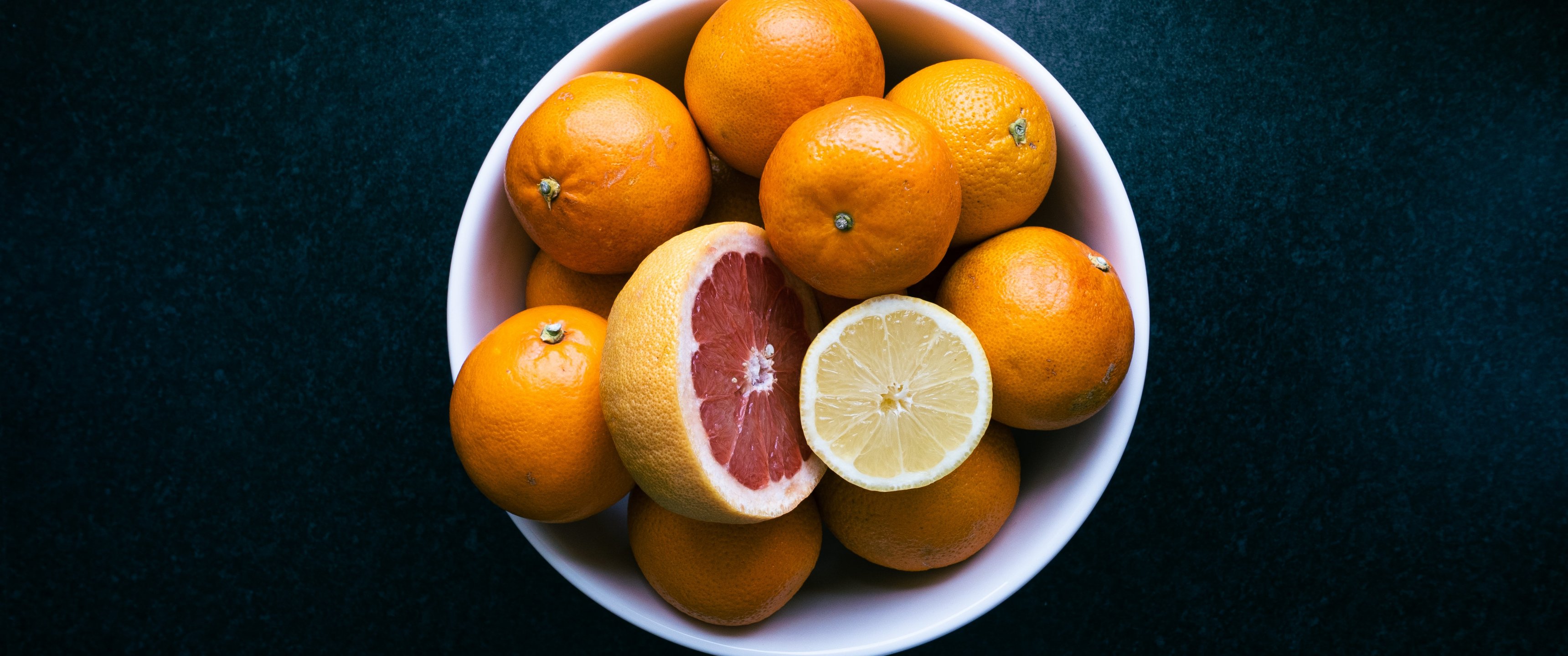 Обои: тарелка с фруктами, мандарины - 3440x1440