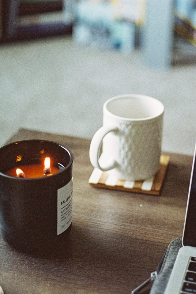 Обои: компьютер, свеча, кружка - 640x960