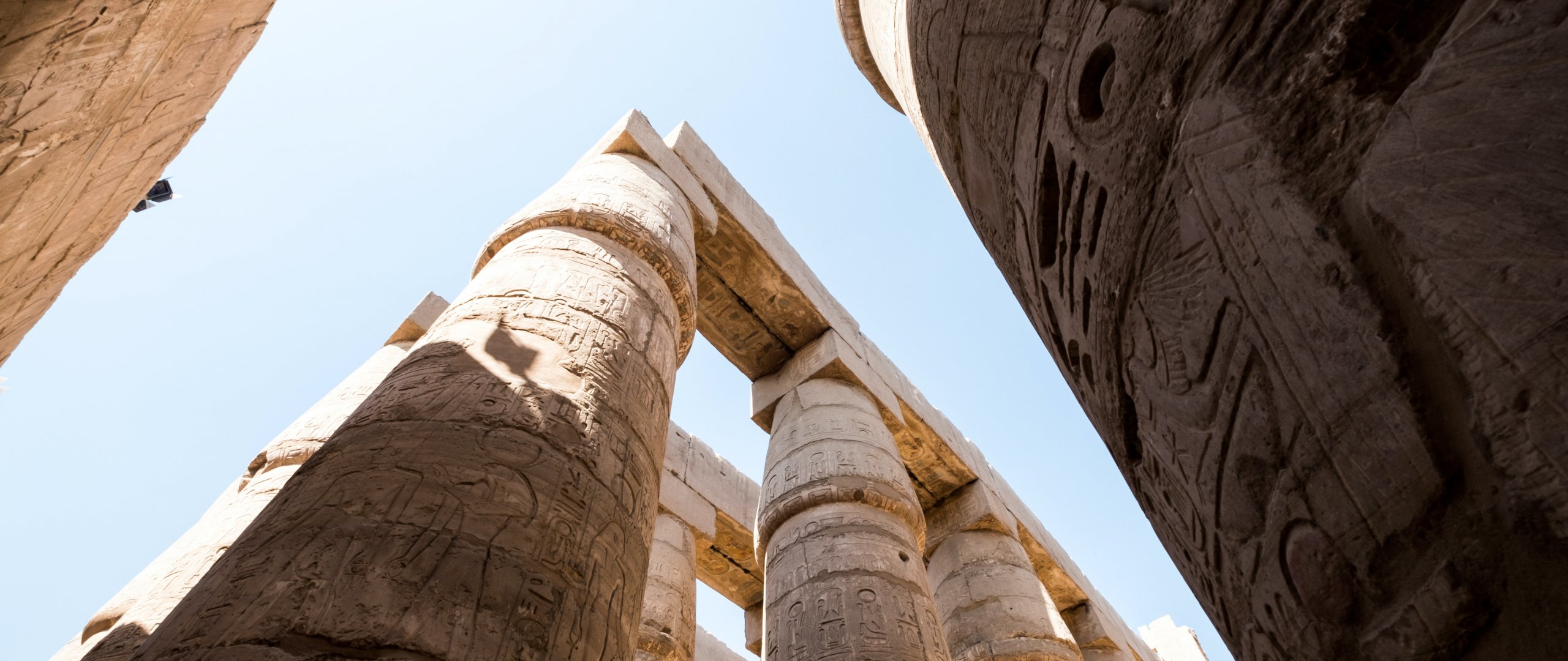 Обои: Египет, колонны, иероглифы - 2560x1080