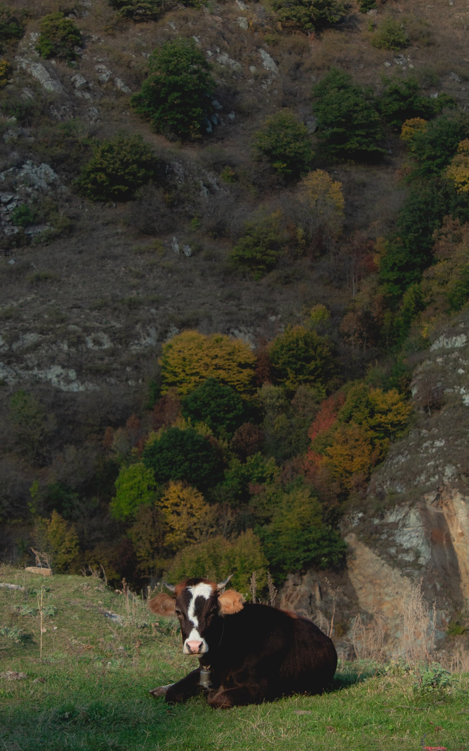 Обои: корова, буренка, в горах - 1600x2560