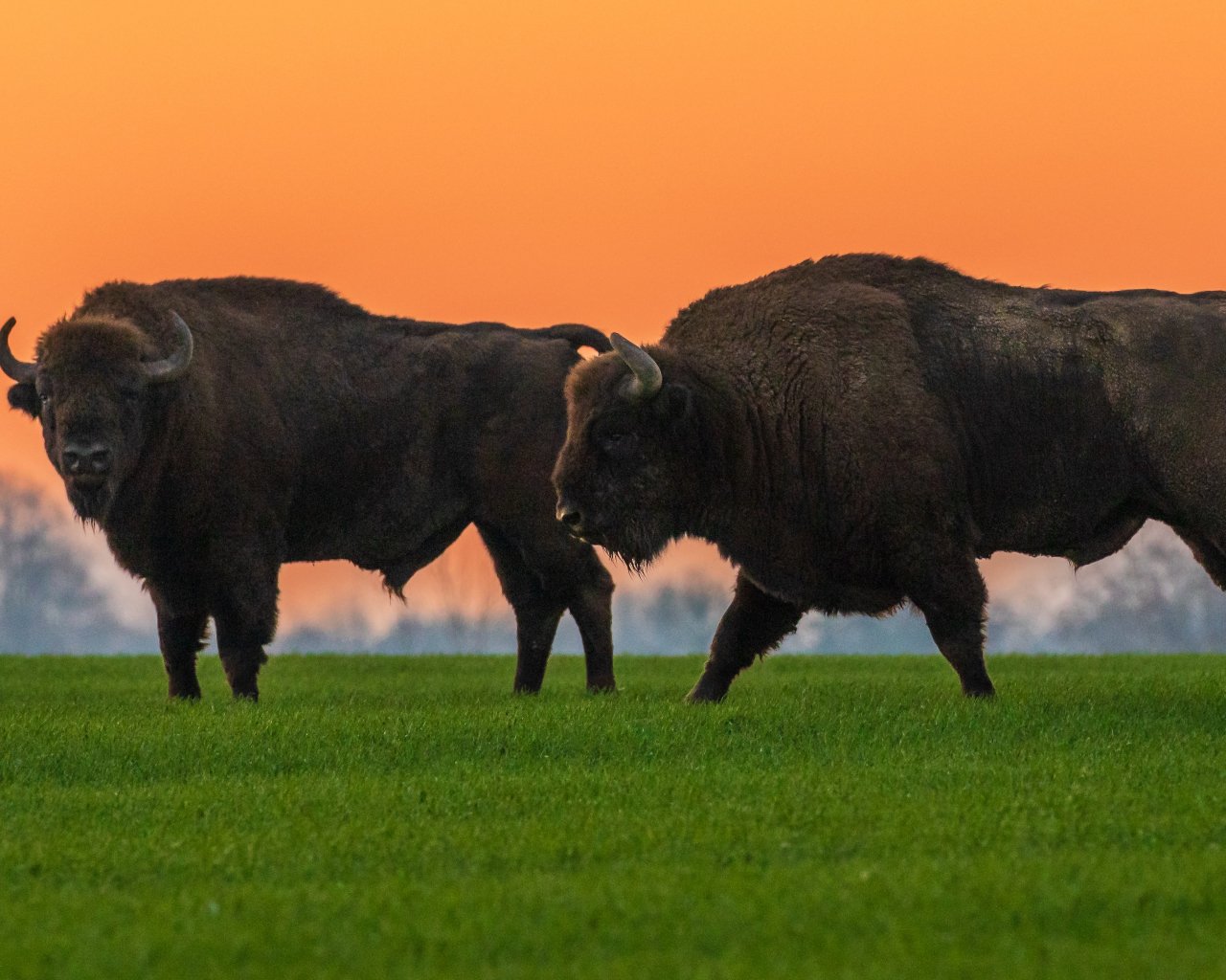 Обои: Крынки, Польша, два бизона - 1280x1024