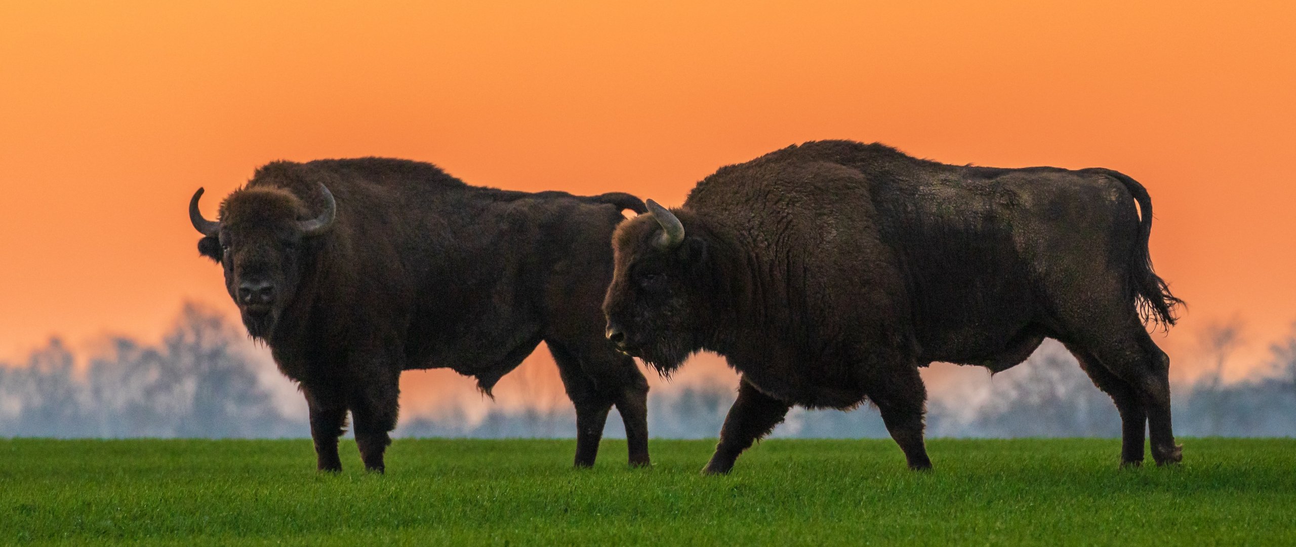 Обои: Крынки, Польша, два бизона - 2560x1080