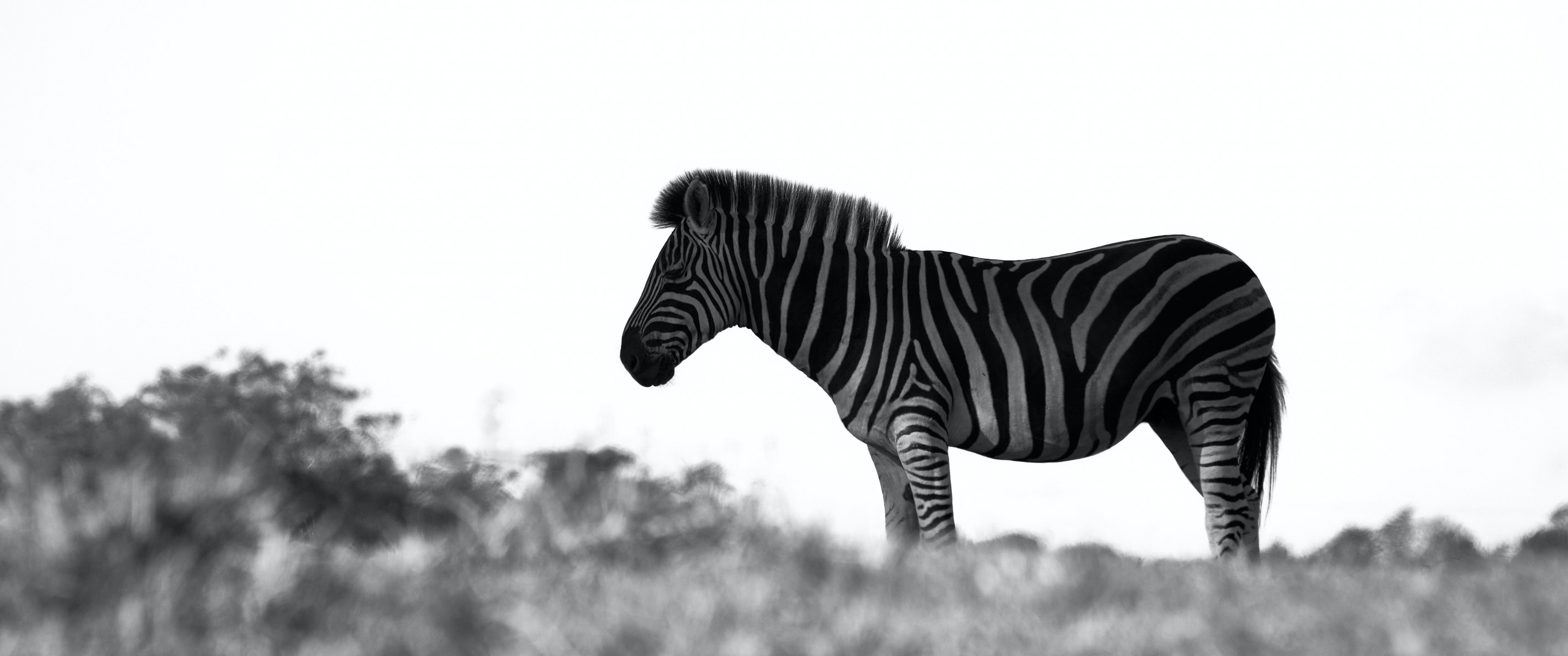 Обои: Африка, зебра, черно-белое фото - 3440x1440