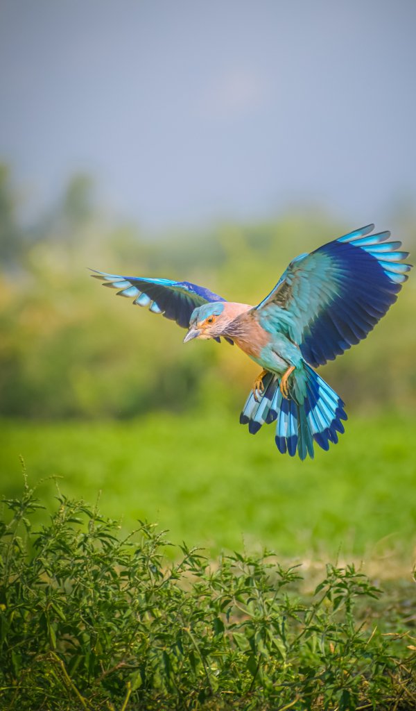 Обои: голубая птица, крылья, полет - 600x1024
