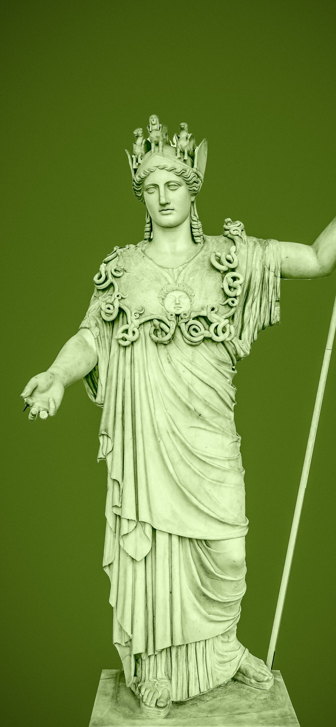 Обои: статуя, зеленый фон - 1170x2532