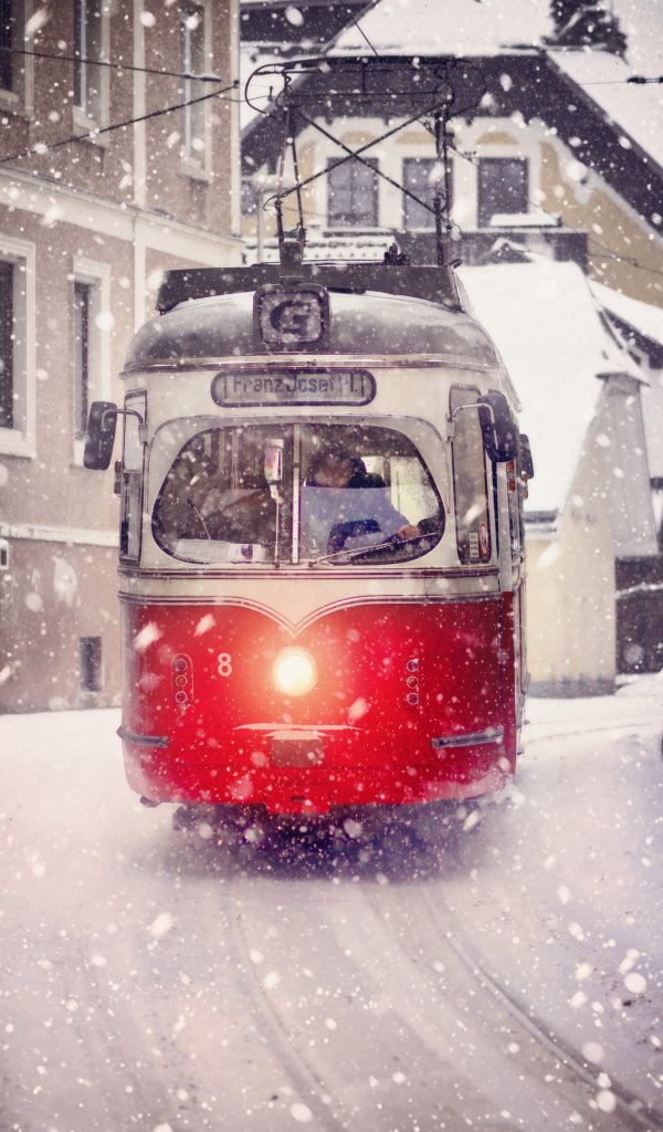 Обои: трамвай, снег - 600x1024