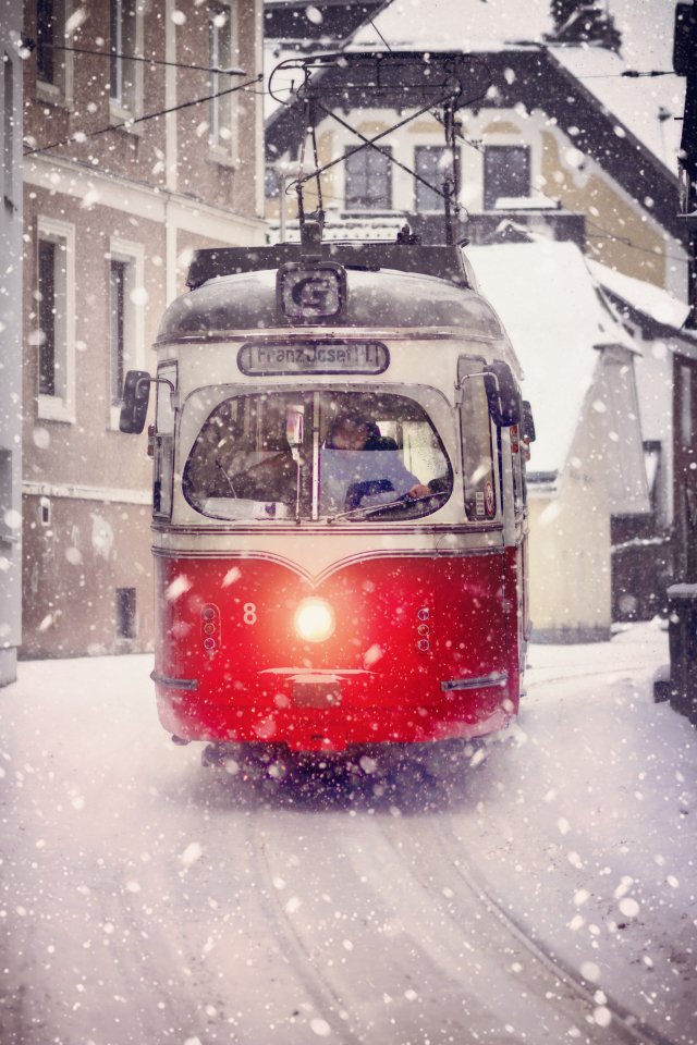 Обои: трамвай, снег - 640x960