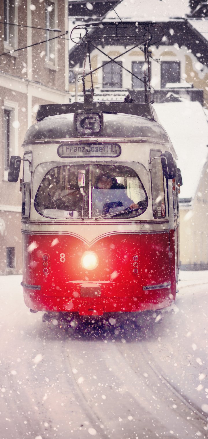 Обои: трамвай, снег - 720x1520