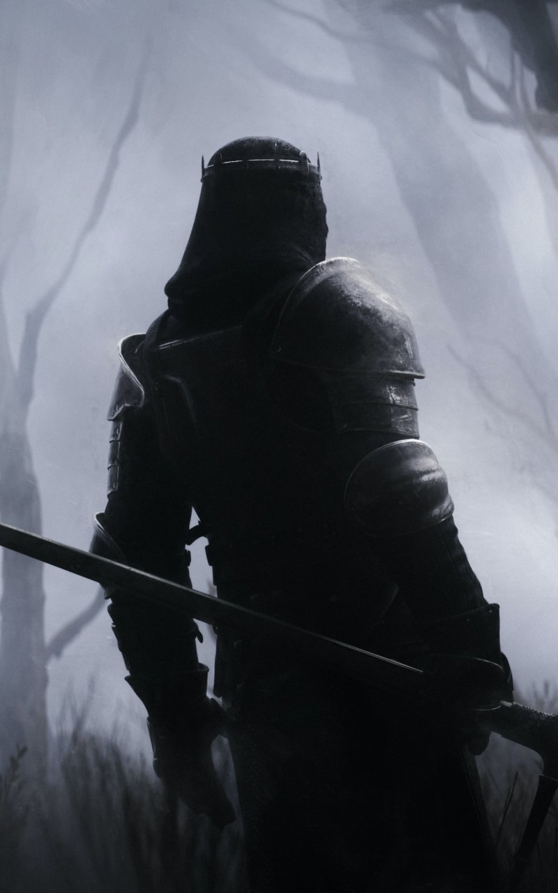 Обои: воин, лес, меч - 800x1280