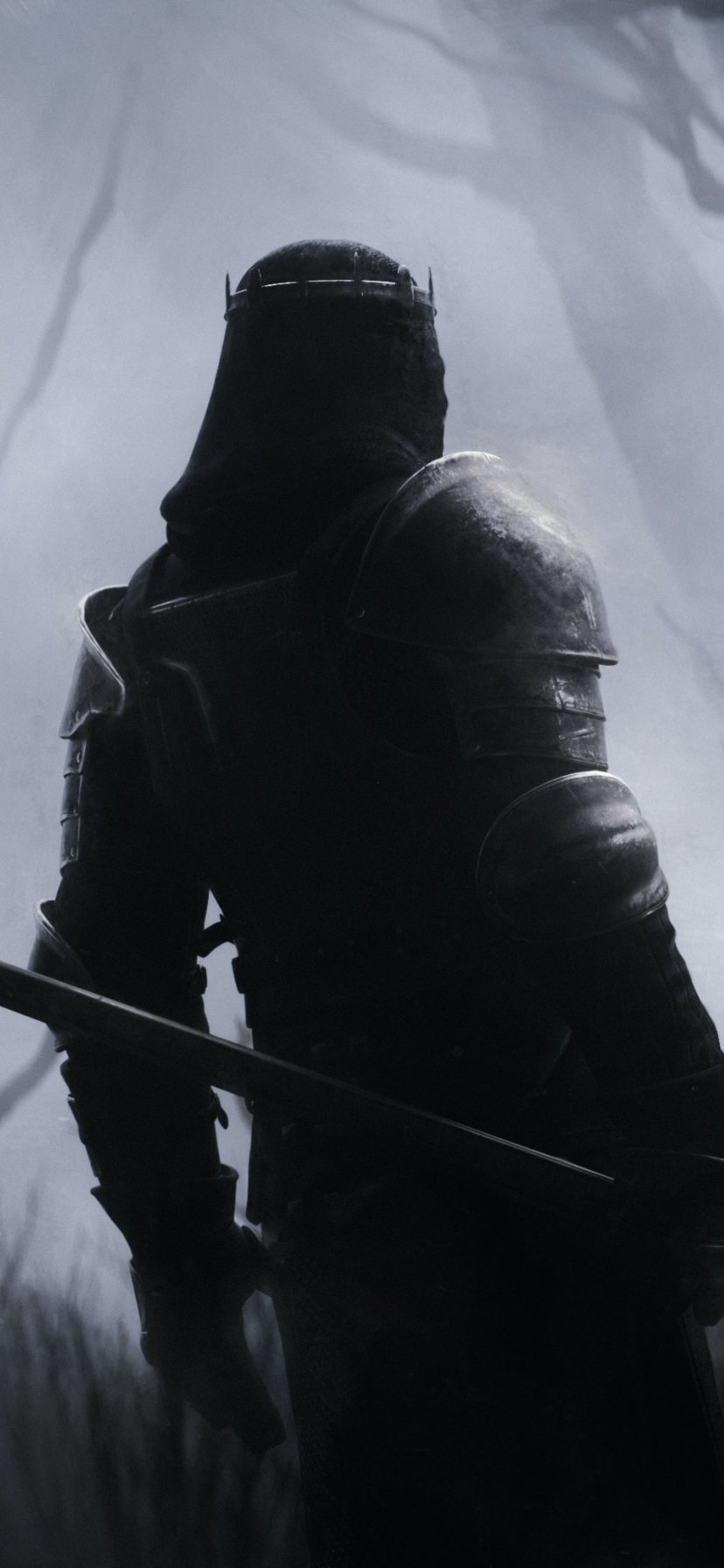 Обои: воин, лес, меч - 828x1792