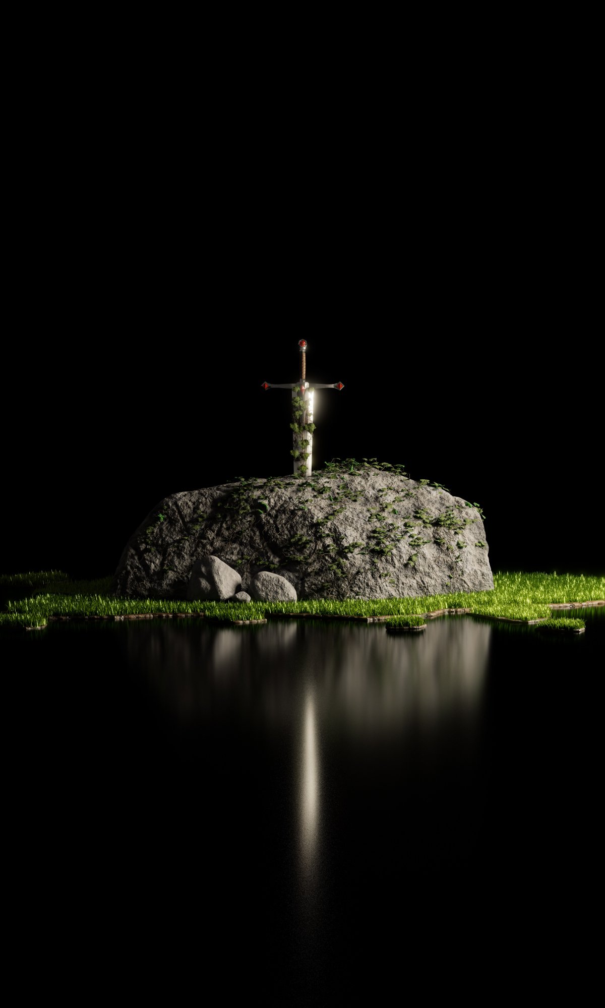 Обои: меч, камень, озеро - 1200x2000