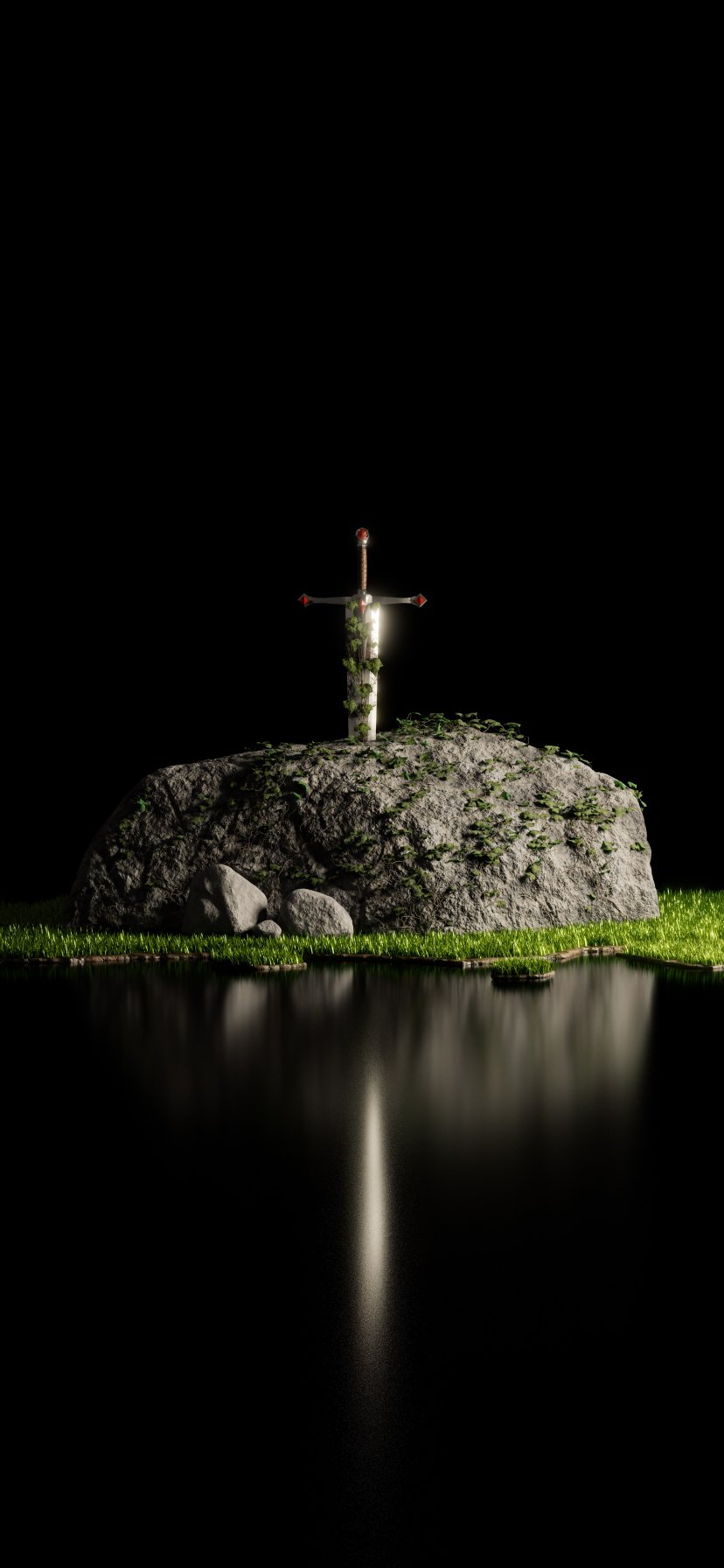 Обои: меч, камень, озеро - 828x1792