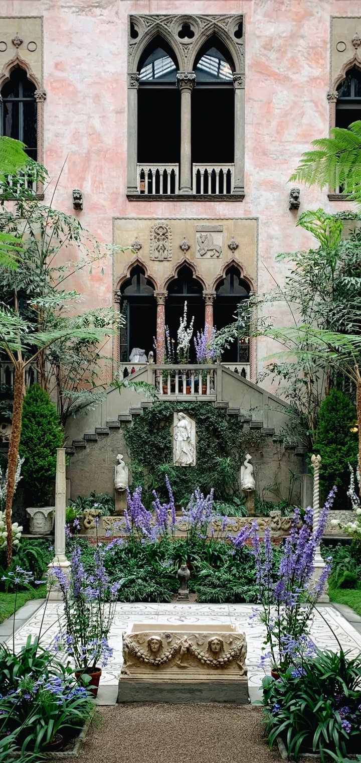 Обои: красивый сад, растения, статуи - 720x1520