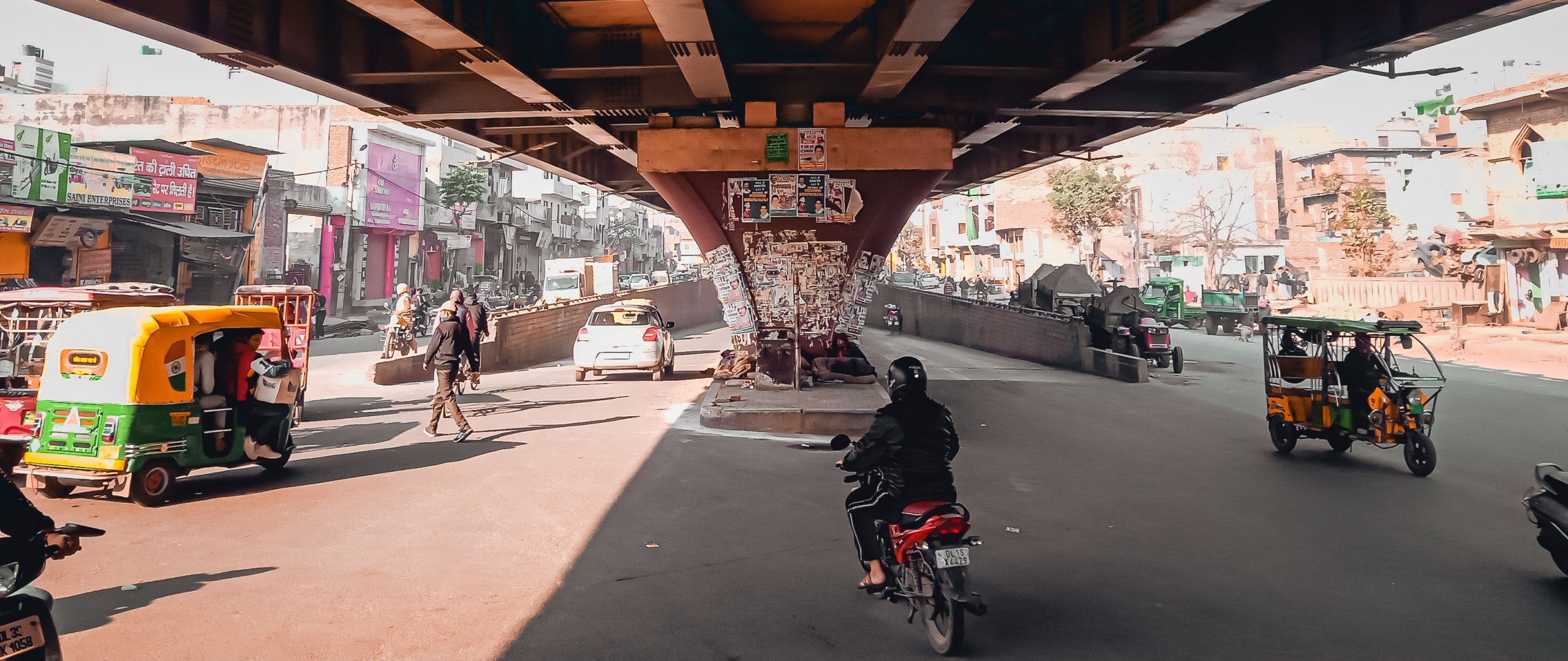 Обои: под мостом, город, мопеды - 2560x1080