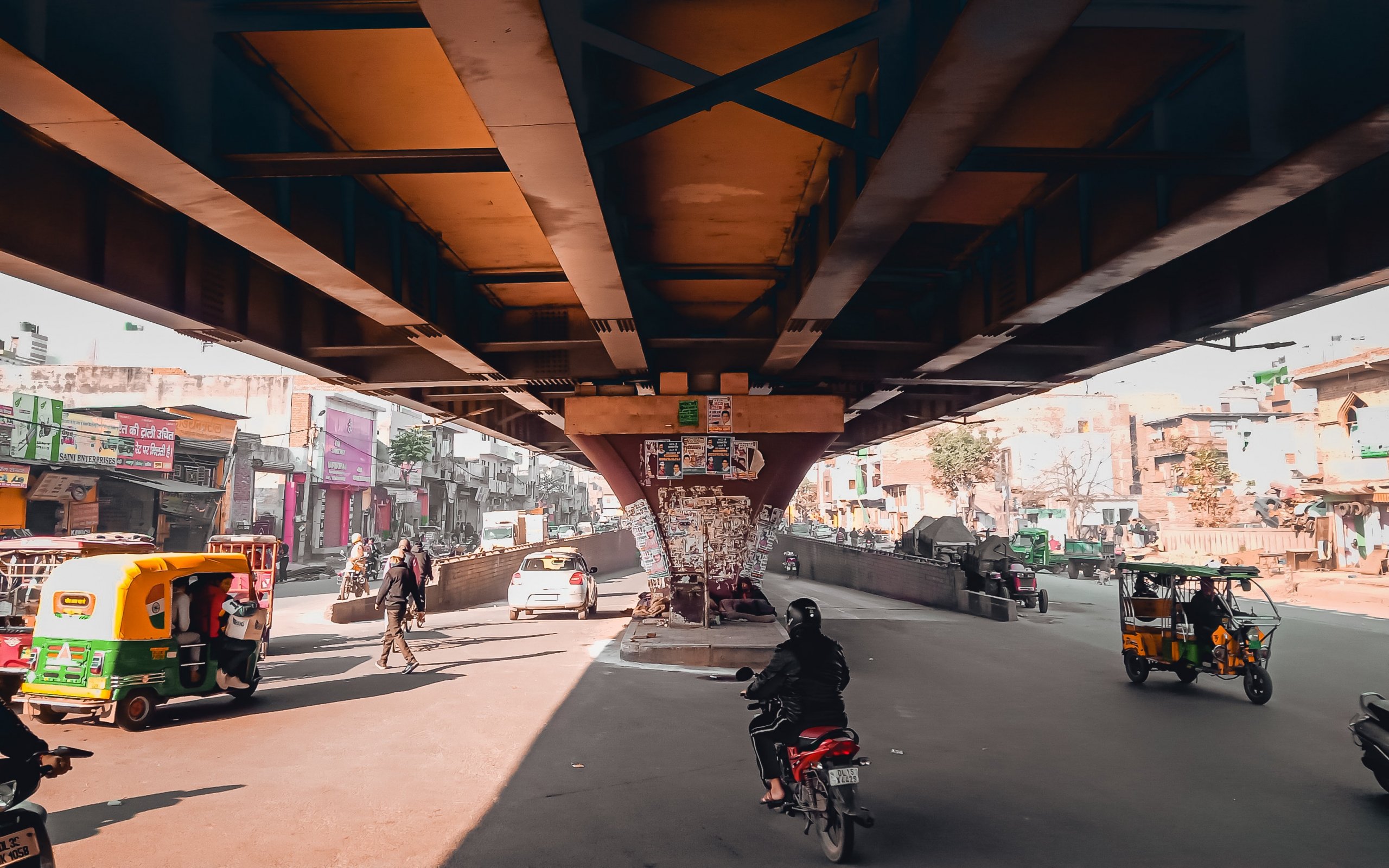 Обои: под мостом, город, мопеды - 2560x1600