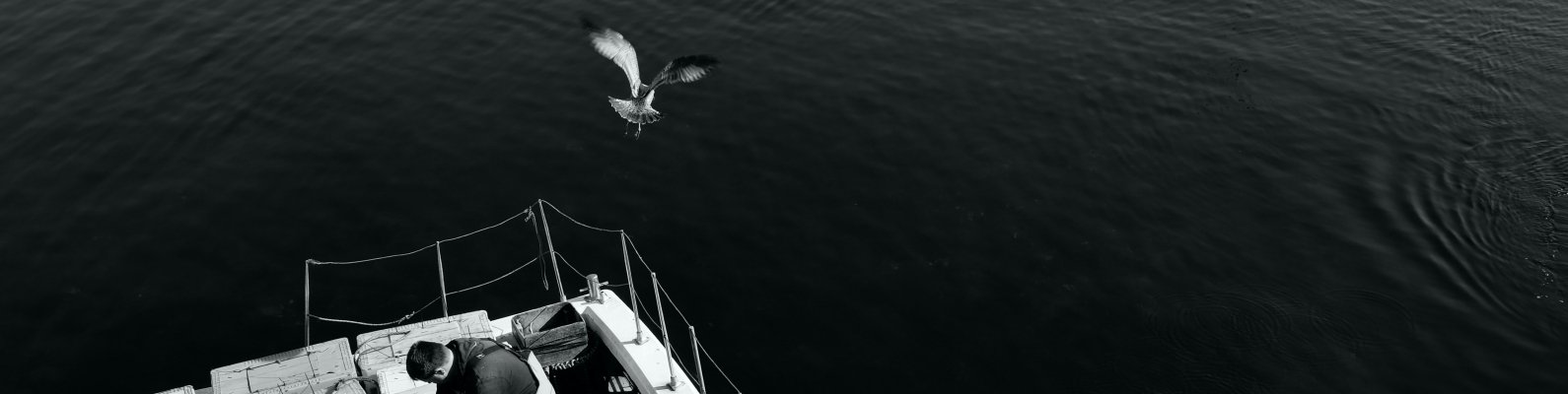 Обои: чайки, море, лодка - 1590x400