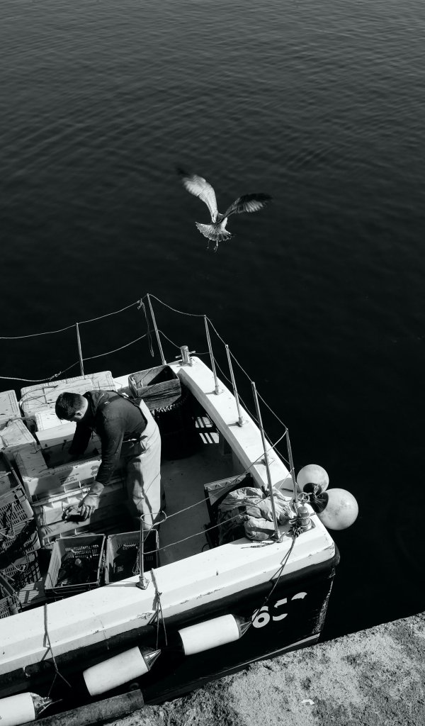 Обои: чайки, море, лодка - 600x1024