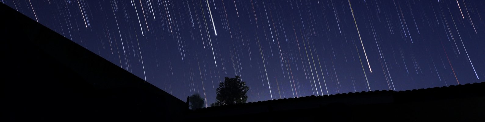 Обои: ночь, звездопад - 1590x400