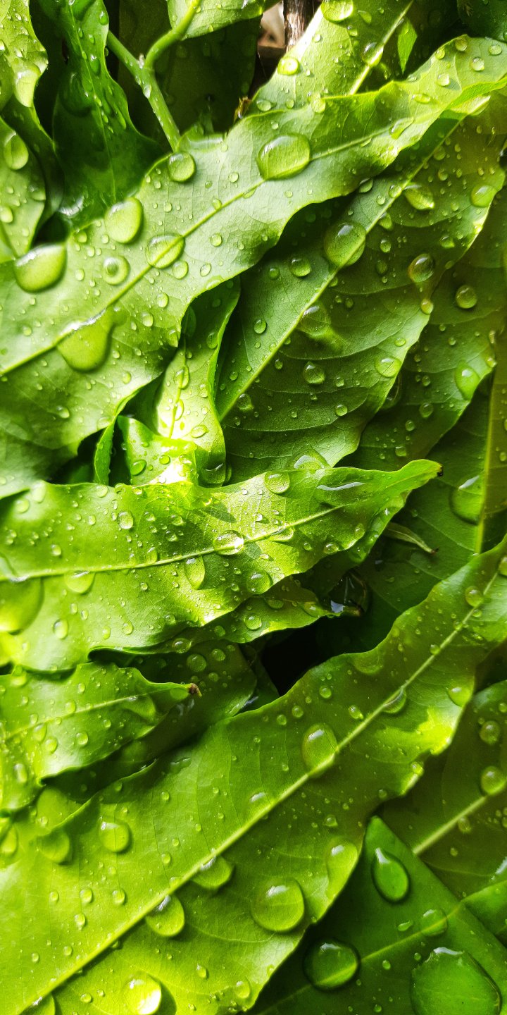 Обои: листья чая, капельки росы - 720x1440