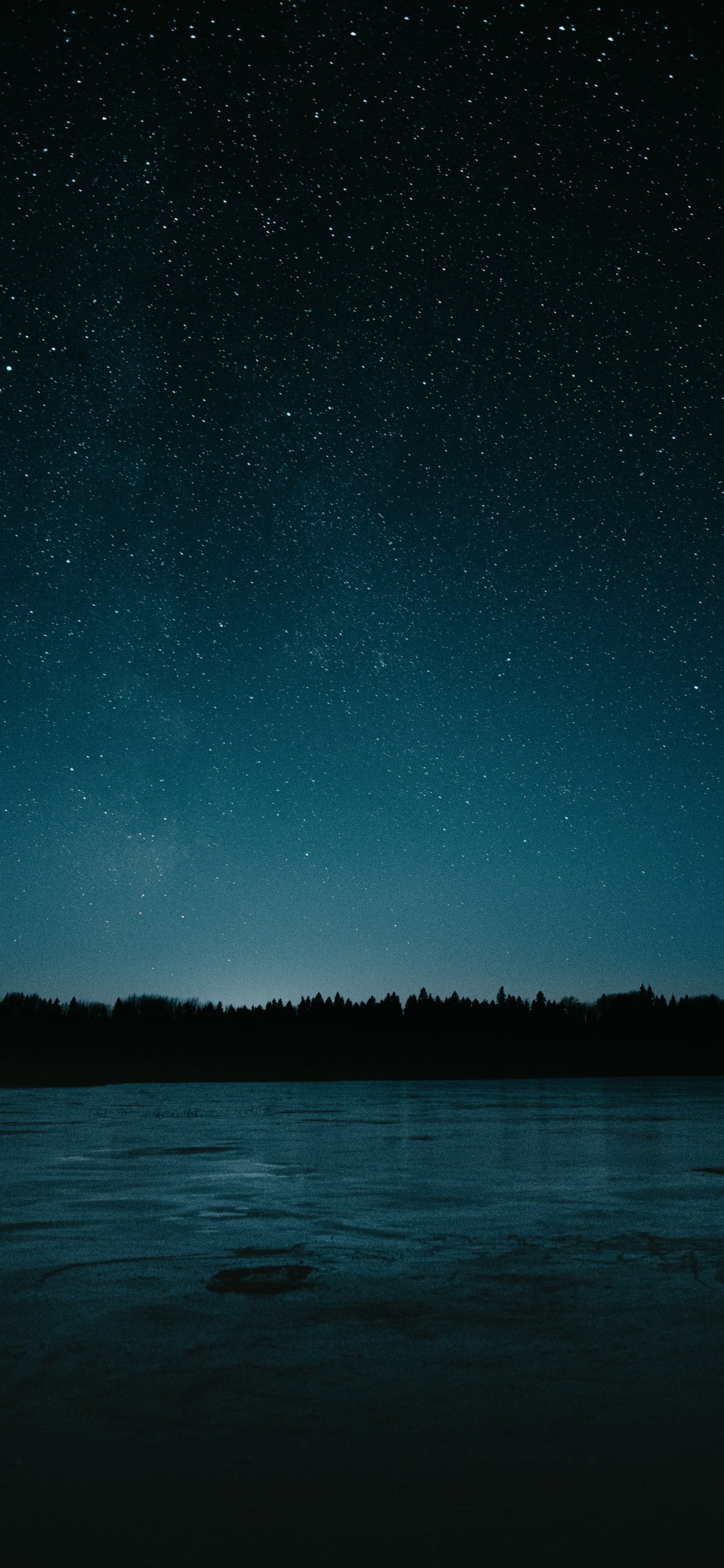 Обои: звездная ночь, озеро - 1125x2436