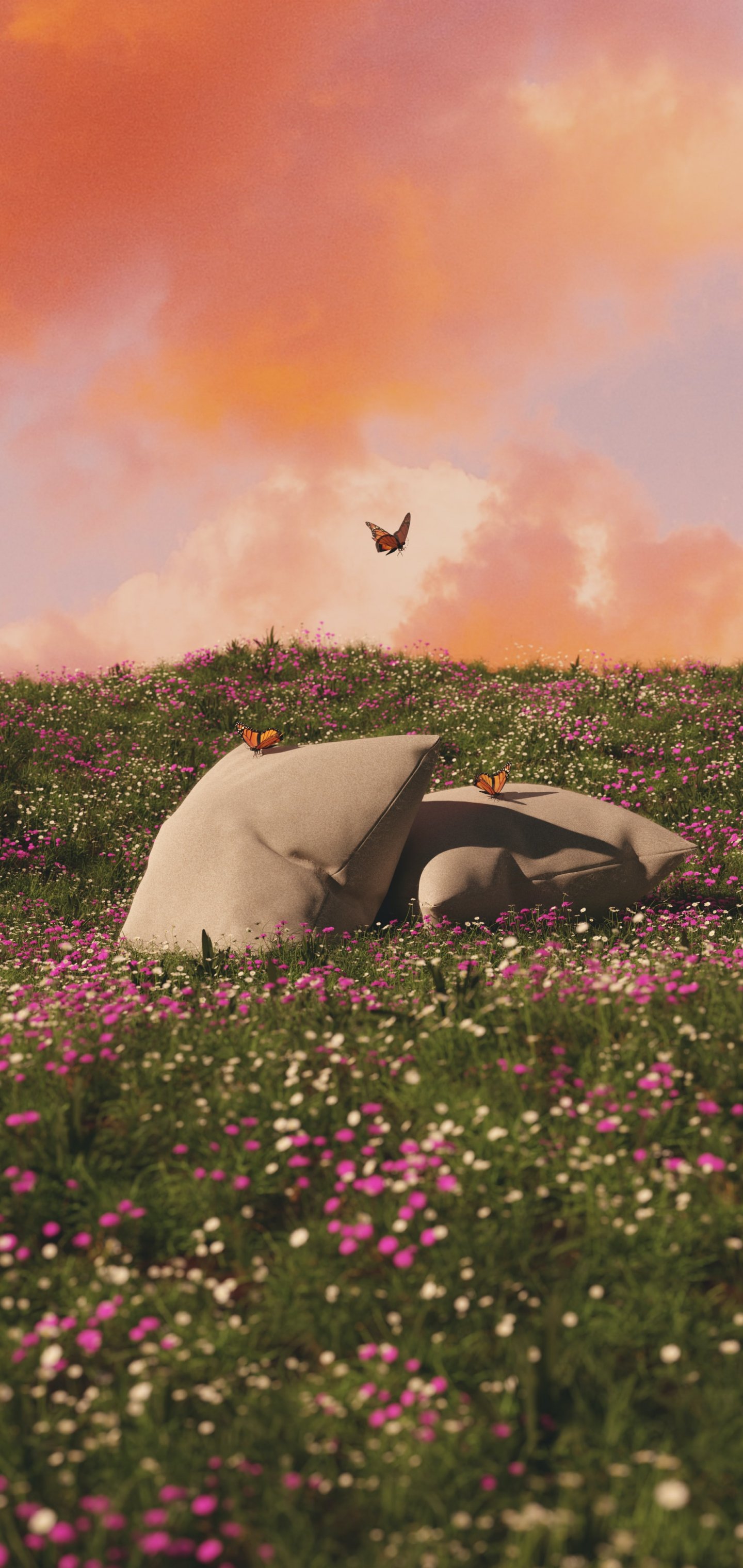 Обои: цветочное поле, подушки - 1440x3040