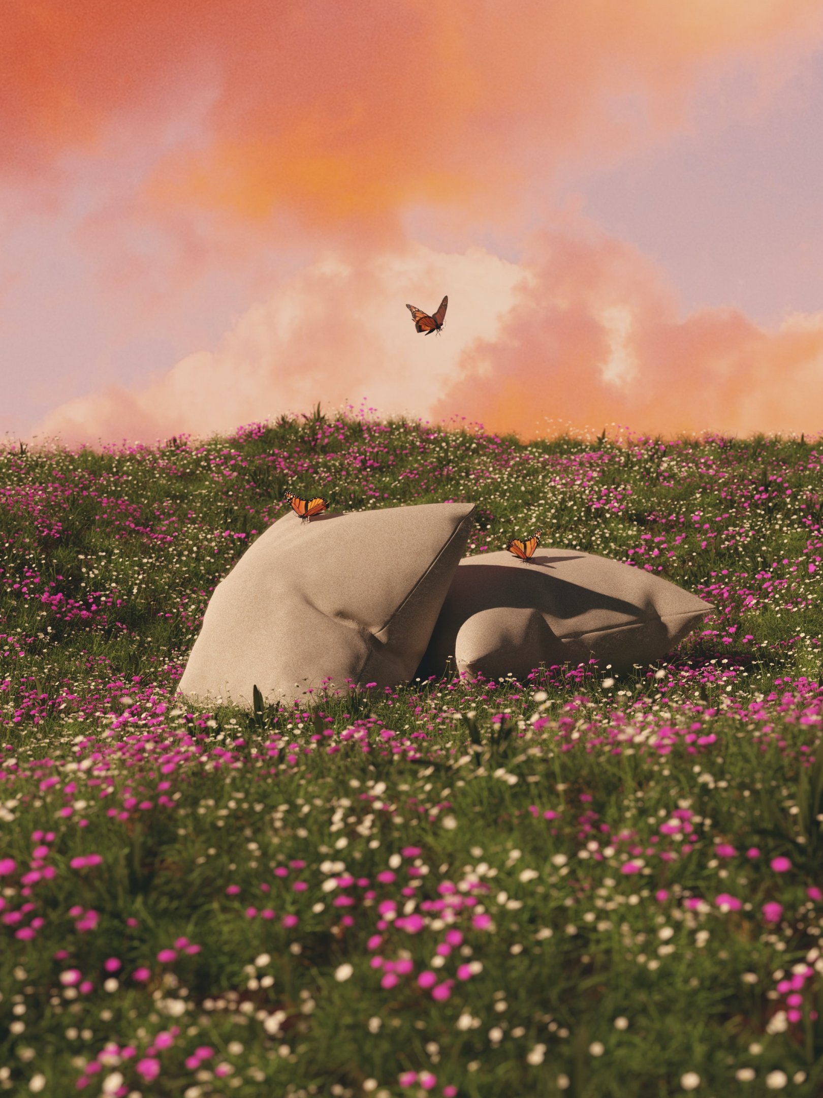 Обои: цветочное поле, подушки - 1620x2160