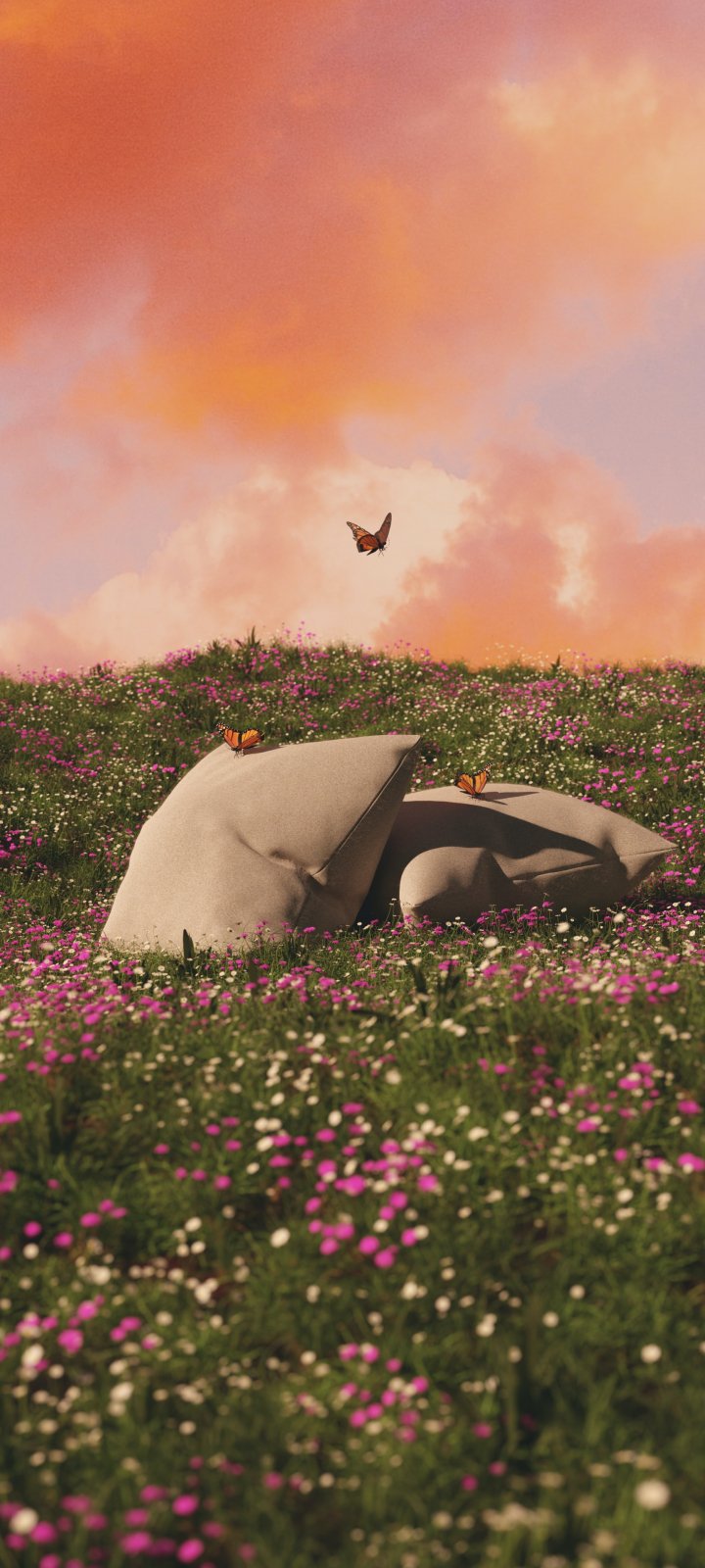 Обои: цветочное поле, подушки - 720x1600