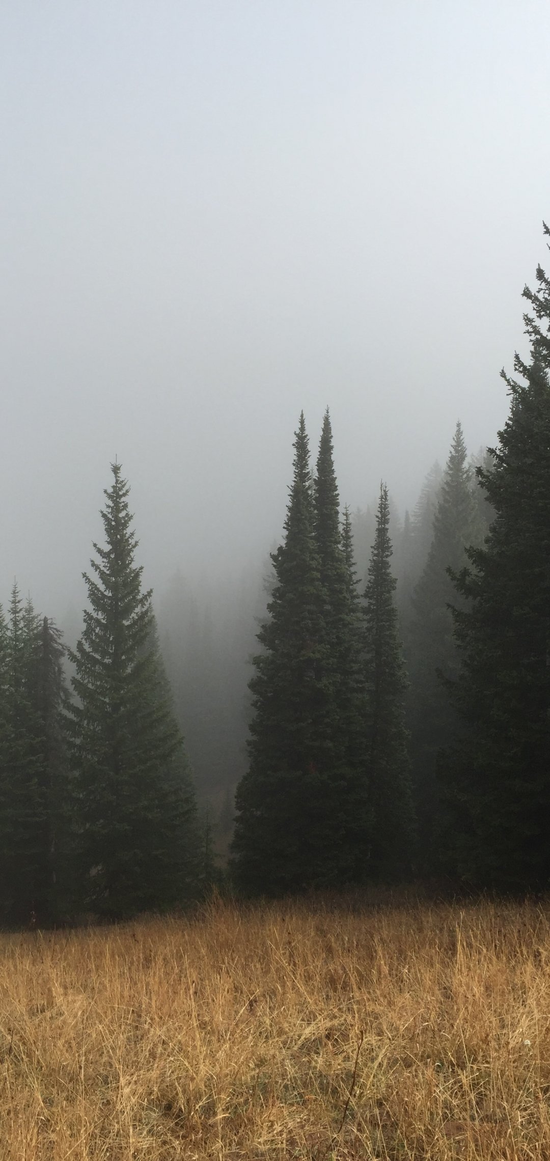 Обои: туман, хвойные деревья - 1080x2280